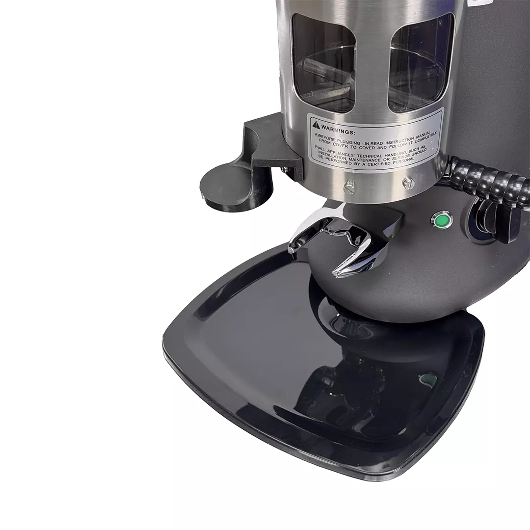 - در قسمت خروجی قهوه آسیاب دوزر دار شده یک عدد گیره قابل تنظیم و انعطاف پذیر و همچنین یک عدد نگهدارنده دسته اسپرسو نیز می باشد. در قسمت انتهایی این آسیاب قهوه برقی یک عدد سینی قرار دارد تا از کثیف شدن دورو اطراف این دستگاه جلوگیری کند و قابل بازشدن و شسشتشو نیز می باشد.