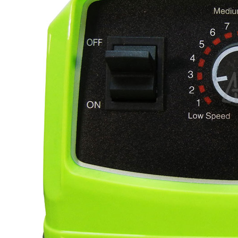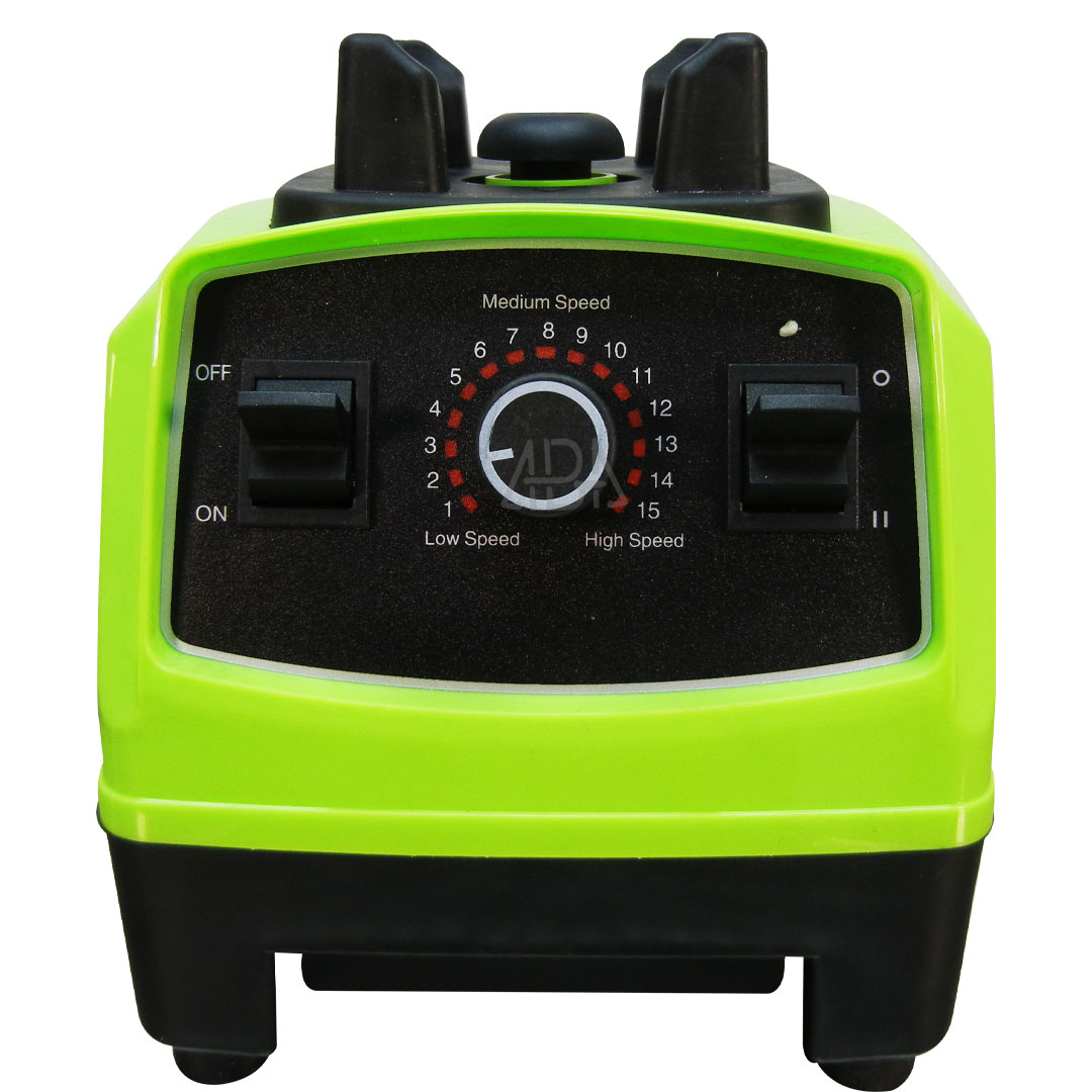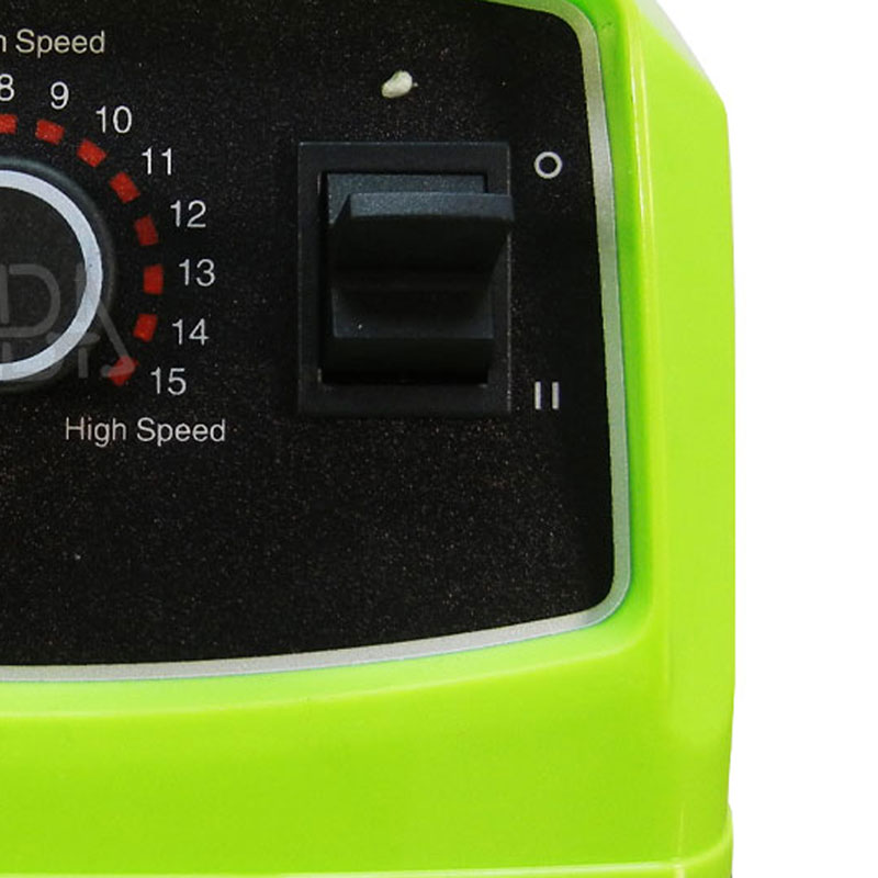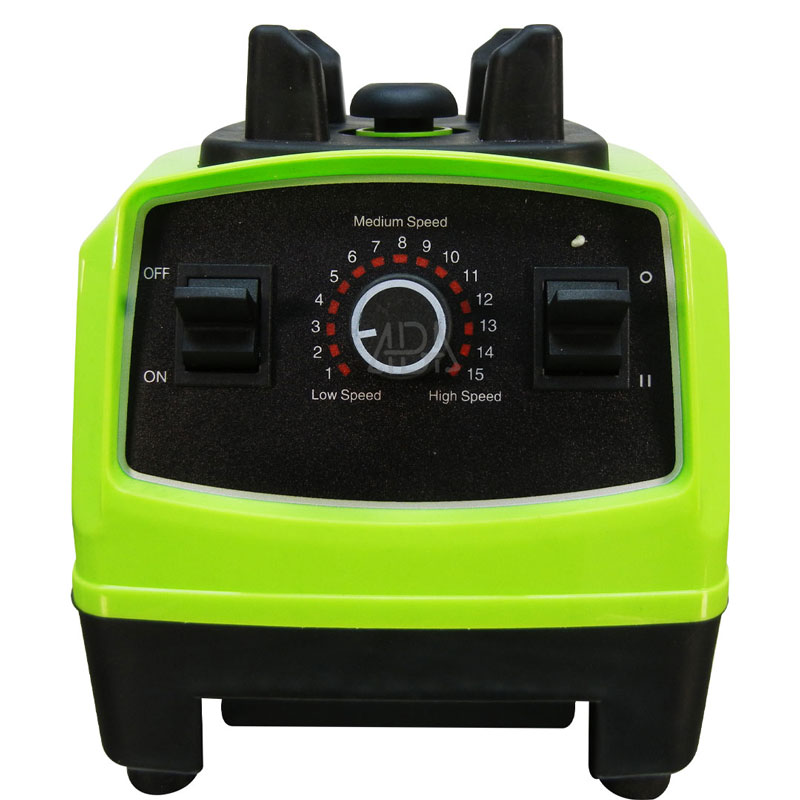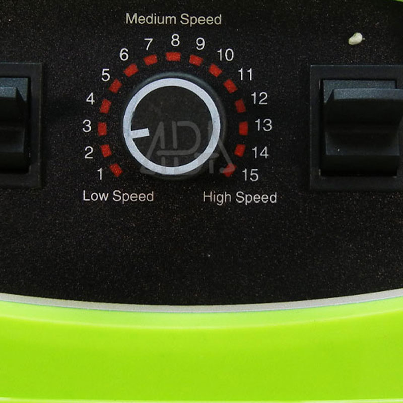 - دستگاه بلندر صنعتی دارای یک عدد کلید جهت روشن خاموش کردن بلندر به صورت دستی و یک عدد کلید جهت تنظیم میزان سرعت بلند کردن از 1 تا 15 و کلید سمت راست جهت قدرتمند تر کردن دور موتور می باشد یعنی شما میتوانید برای مخلوط کردن موادی که احتمال میدهید دستگاه نتواند با میزان تعیین شده خرد و میکس کند این دکمه به شما این امکان را میدهد که دور موتور را به صورت دوبل تنظیم نمایید.