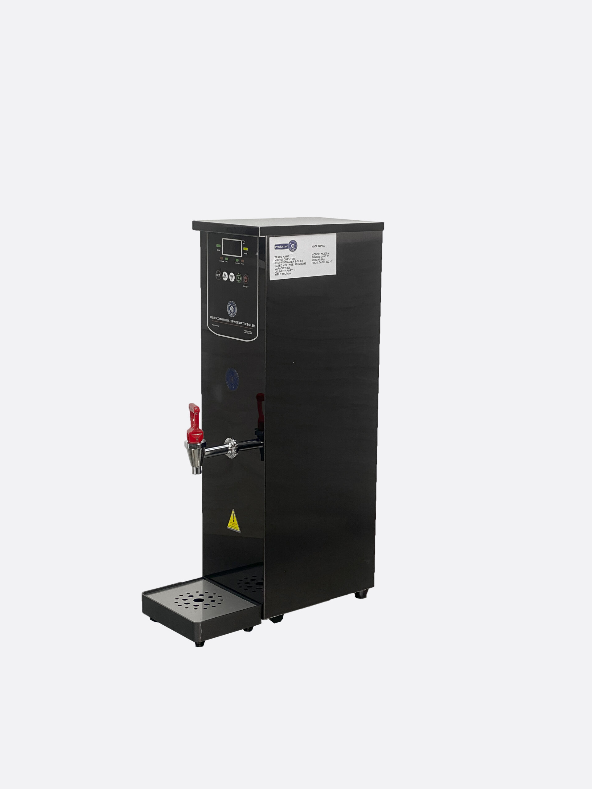 دستگاه بویلر 20 لیتری آب جوش برقی: وسیله ایست دارای یک مخزن که به طور معمول در آن آب گرم شده و به نقطه جوش می رساند. دستگاه بویلر یک مخزن تحت فشار که آب در آن به درجه مورد نظر می رسد و همچنین مورد استفاده قرار می گیرد. در اصل بویلر آب جوش بخاطر فشار بالا و پر شدن مخزن به صورت اتوماتیک ( در صورت خارج شدن آب گرم از مخزن بلافاصله دوباره آب پر می شود) و همچنین صفحه نمایشگر با قابلیت تنظیم میزان حرارت آب بهترین گزینه برای تهیه آب جوش برای انواع چای و قهوه دمی در تمامی کافی شاپ ها، رستوران ها، هتل ها و … می باشد.