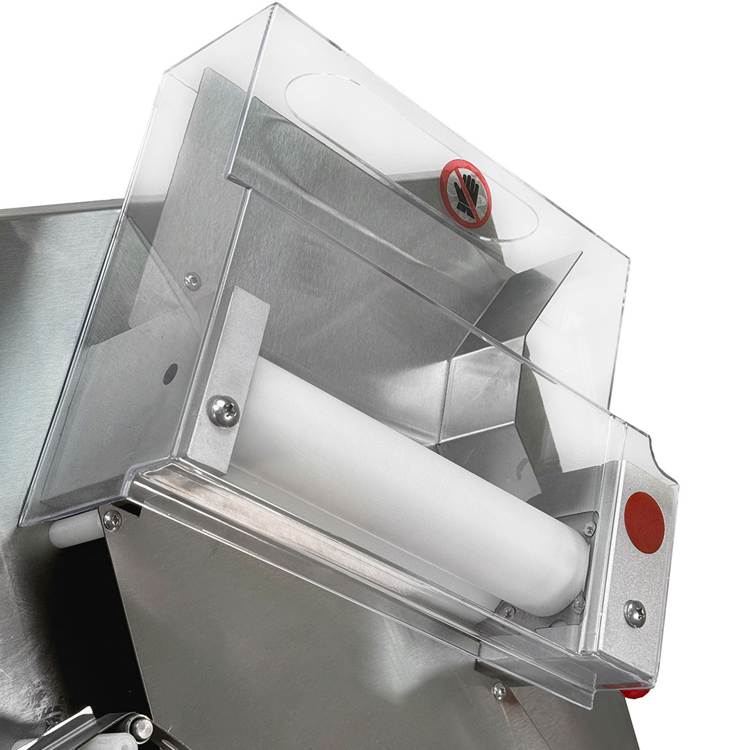 - عرض خمیر قابل تنظیم می باشد که شما می توانید با کمک اهرم کنار دستگاه خمیر پهن کن عرض خمیر را از ۱۰ سانت تا ۳۰ سانت تنظیم نمایید.