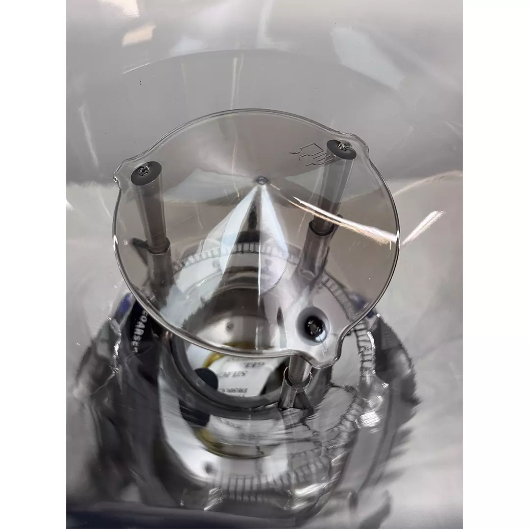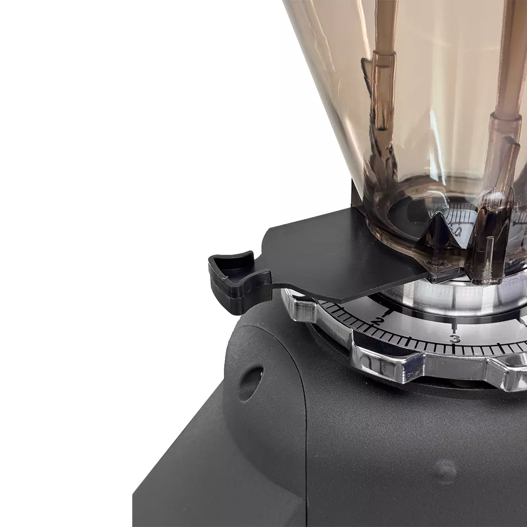 - داخل این قیف آسیاب قهوه های برقی یک عدد کلاهک وجود دارد تا از خطر های احتمالی زمانی که کاربر دست اش را داخل قیف کند جلوگیری شود تا دست کاربر به تیغه های تیز این آسیاب قهوه برخورد نکند.