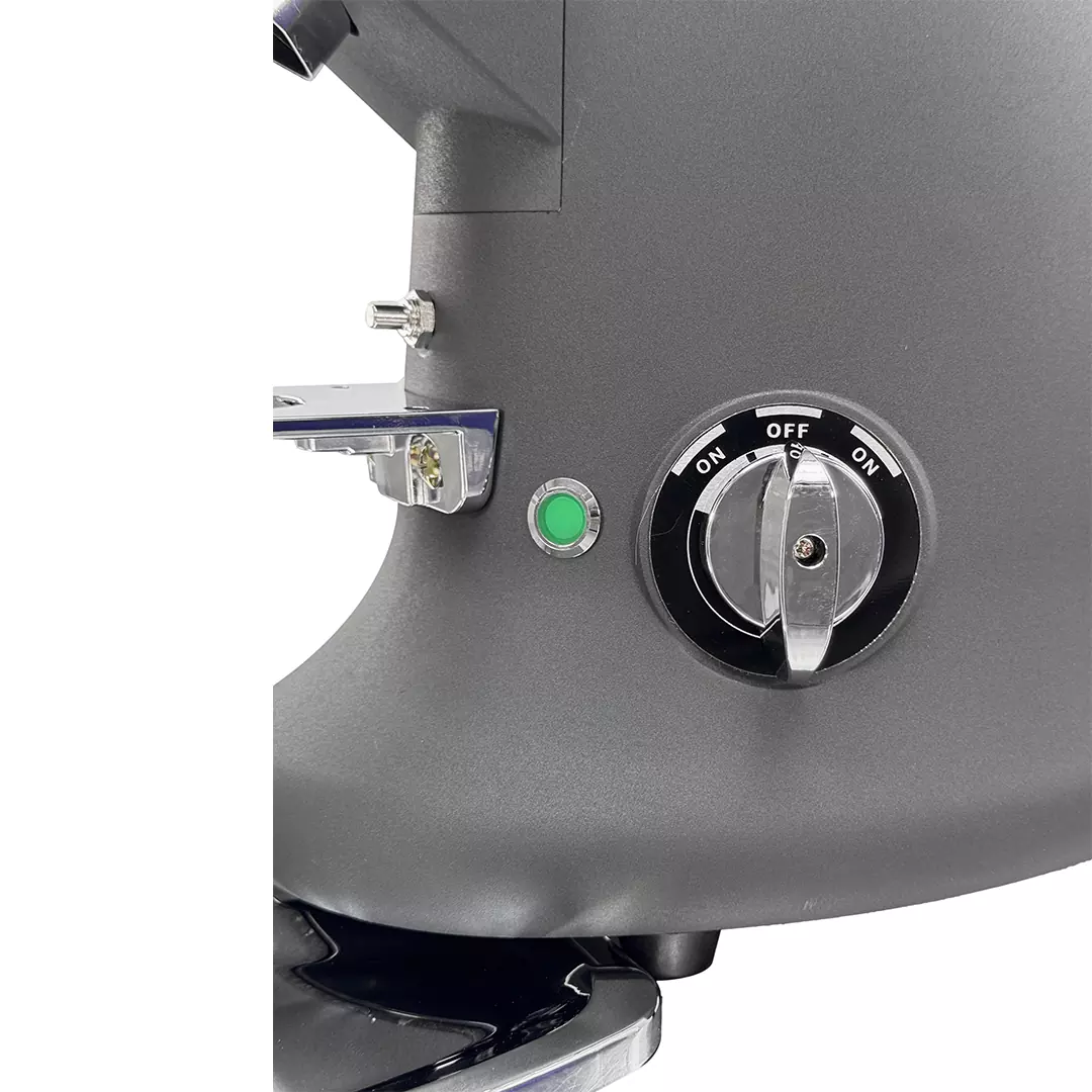 - همچنین این دستگاه آسیاب قهوه برقی دارای کلید روشن خاموش نیز می باشد، زمانی که این کلید در حالت وسط باشد دستگاه خاموش یعنی OFF می باشد و زمانی که به چپ یا راست بچرخانید روشن می شود و شروع به آسیاب کردن می کند.