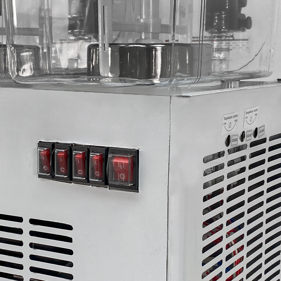 - دستگاه شربت سرد کن فواره ای دارای یک دکمه روشن و خاموش جهت داشتن کنترل زمان روشن و خاموش کردن دستگاه می باشد، یک روکش پلاستیکی روی این دکمه قرار دارد تا از پاشش شربت و آب به دکمه جلوگیری کند و از هر نوع خطری شمارا ایمن سازد.