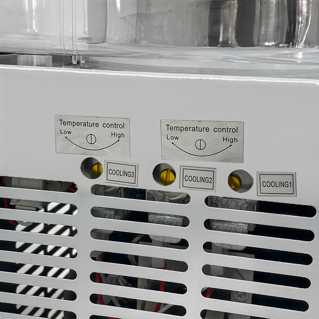 - دمای این دستگاه شربت ساز دو قلو صنعتی بین 4 الی 7 درجه سانتی گراد قابل تنظیم می باشد شما به وسیله ی صفحه دیجیتالی که روی دستگاه شربت سرد کن تعبیه شده به راحتی می توانید دمای داخلی مخزن را چک و تنظیم کنید.