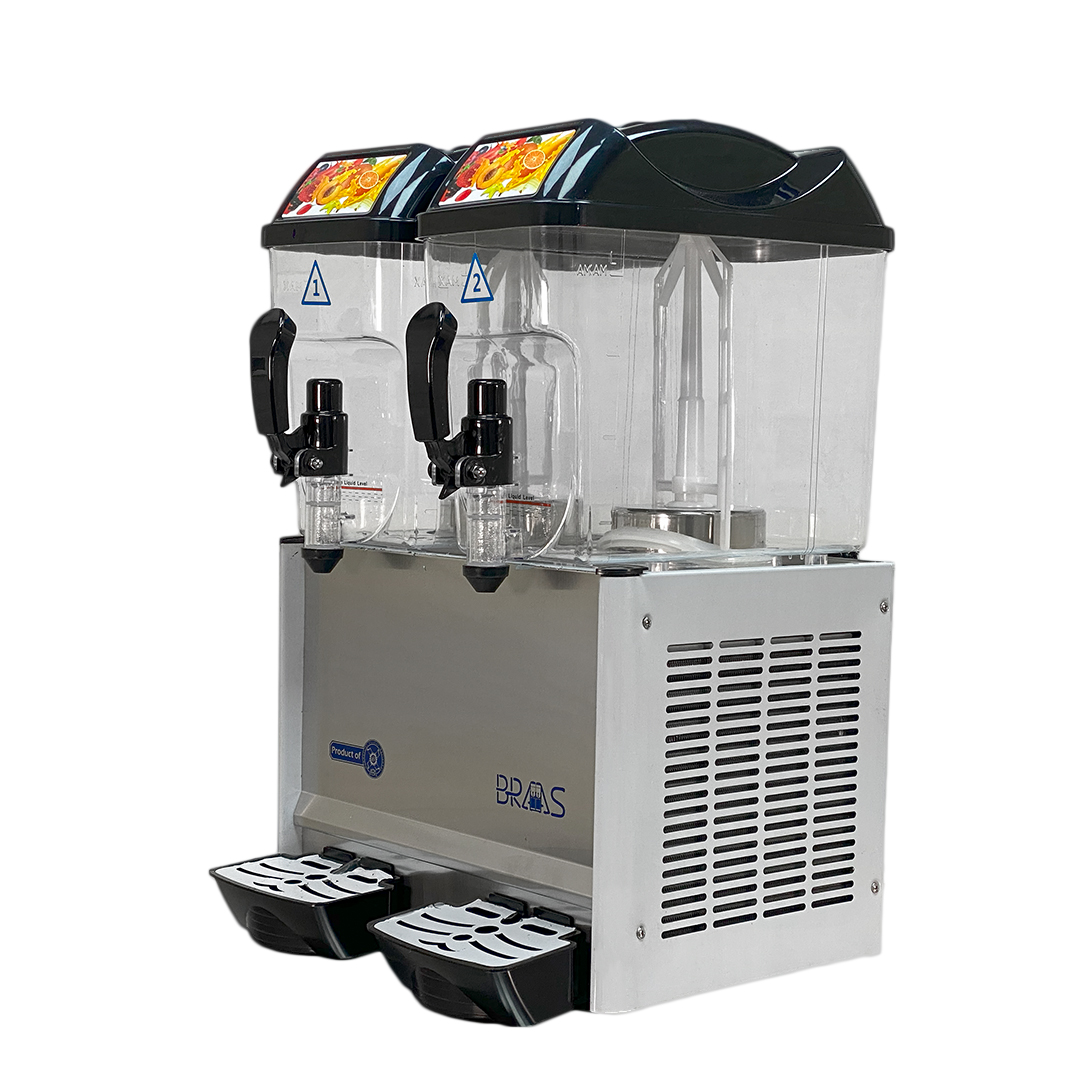 دستگاه شربت ساز دو قلو صنعتی مدل پمپی : دستگاه شربت ساز دو قلو صنعتی محصول جدید وارداتی مجموعه ما از کشور چین می باشد. این محصول شربت سردکن آبشاری مدل پمپی به صورت اختصاصی در دو سایز دو مخزن و سه مخزن با برند معتبر و زیر نظر مدیر عامل مجموعه وارد می شود.