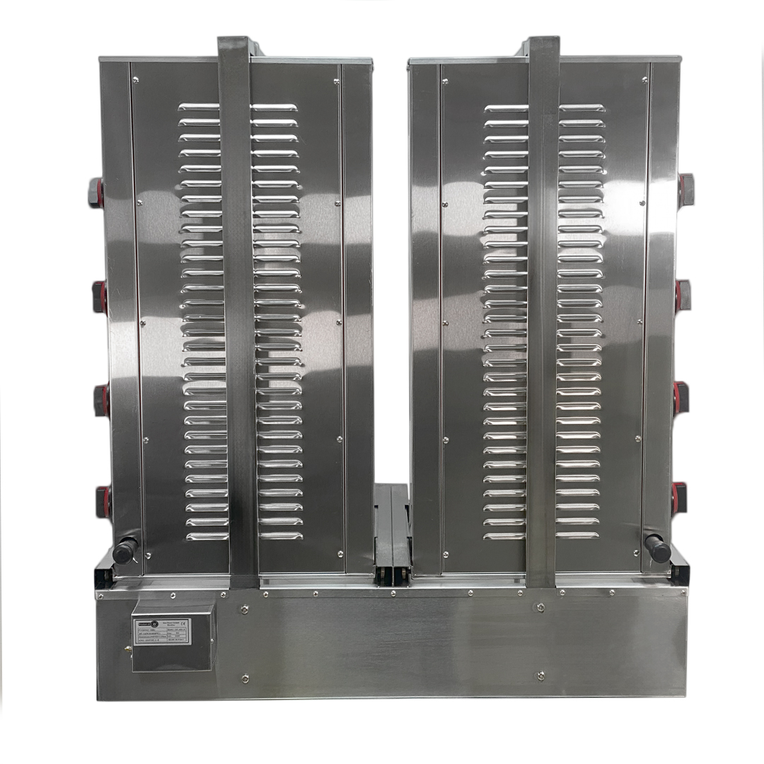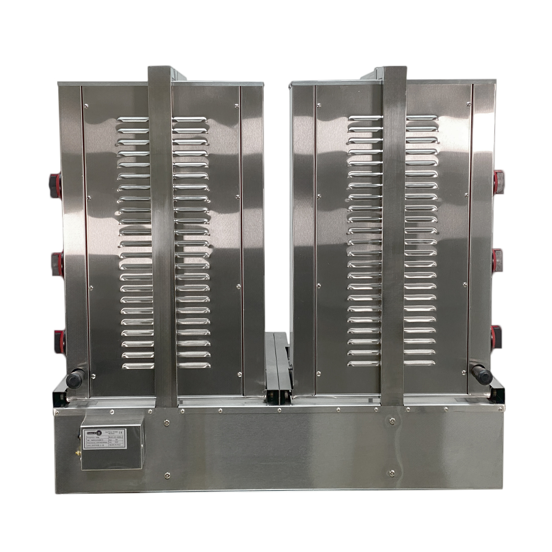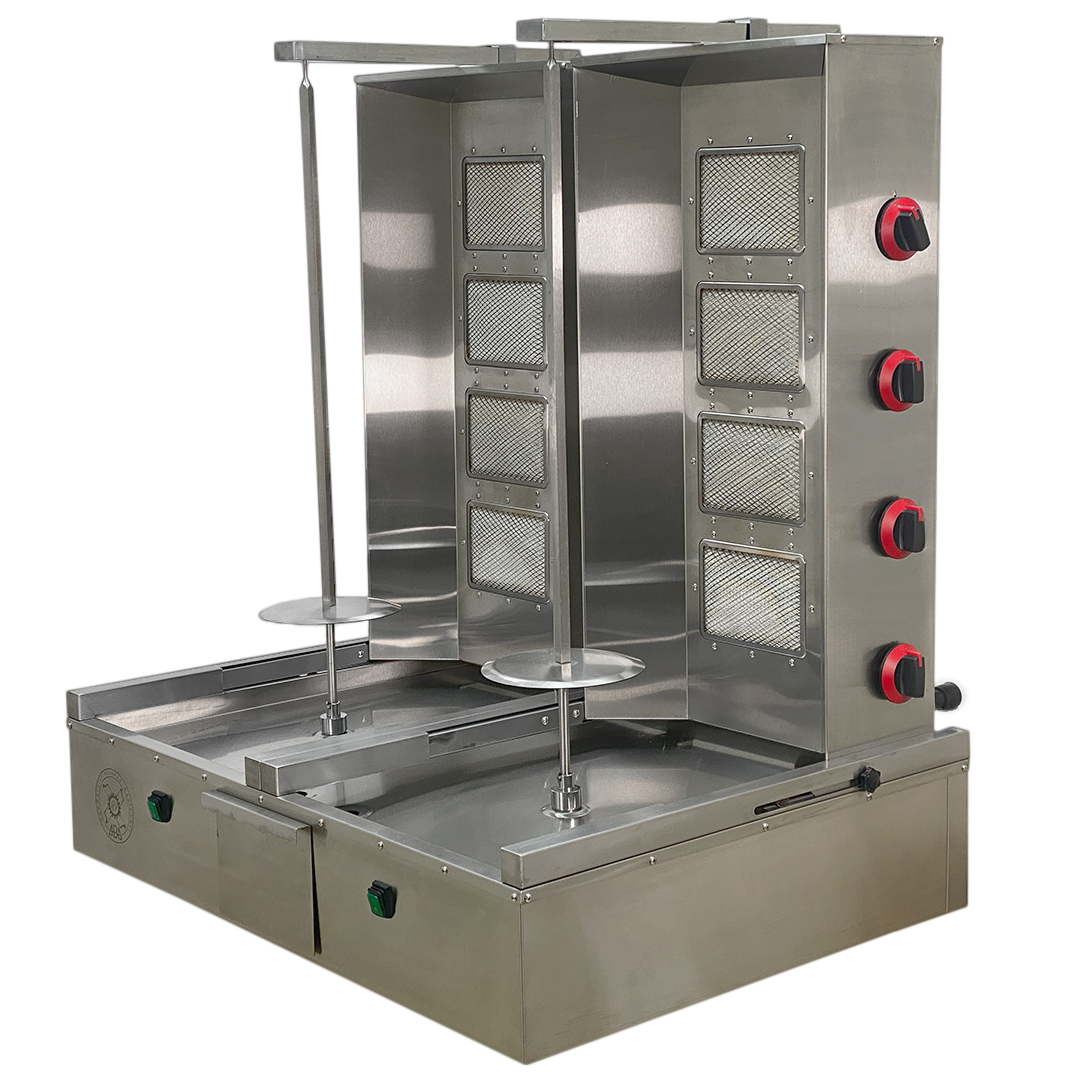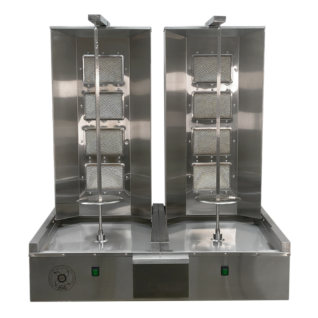 دستگاه کباب ترکی صنعتی دو سیخ : شاورما یا همان کباب ترکی یکی از بهترین غذاهای فست فود تا به امروز بوده است که طرفداران بسیاری برای خود جمع کرده است. دستگاه کباب ترکی یا همان دستگاه شاورما پز یکی بهترین دستگاه های پخت کباب ترکی/ شاورما می باشد. دستگاه شاورما کباب ترکی رومیزی در دو سایز تک سیخ و دو سیخ هر کدام در دو مدل سه شعله و چهار شعله آماده فروش می باشد. در این صفحه می خواهم دستگاه فر کباب ترکی رومیزی یا همان دستگاه شاورما پز دو سیخ چهار شعله رومیزی را به شما معرفی کنم.