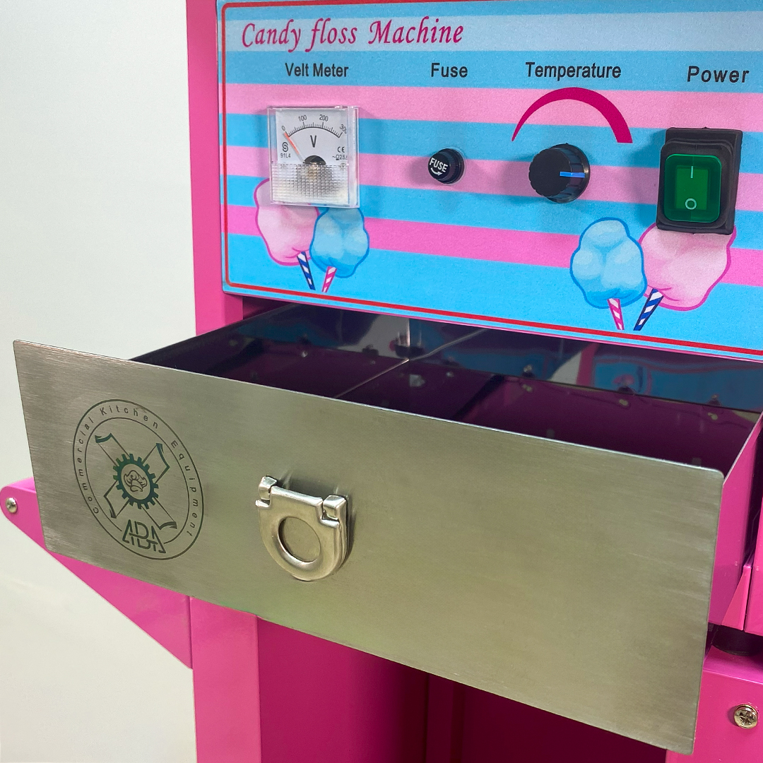 - همچنین یک عدد کابینت زیر دستگاه پشمک ساز( در کالسکه ) تعبیه شده تا لوازم بزرگ تر و بیشتر را درون آن قرار دهید.